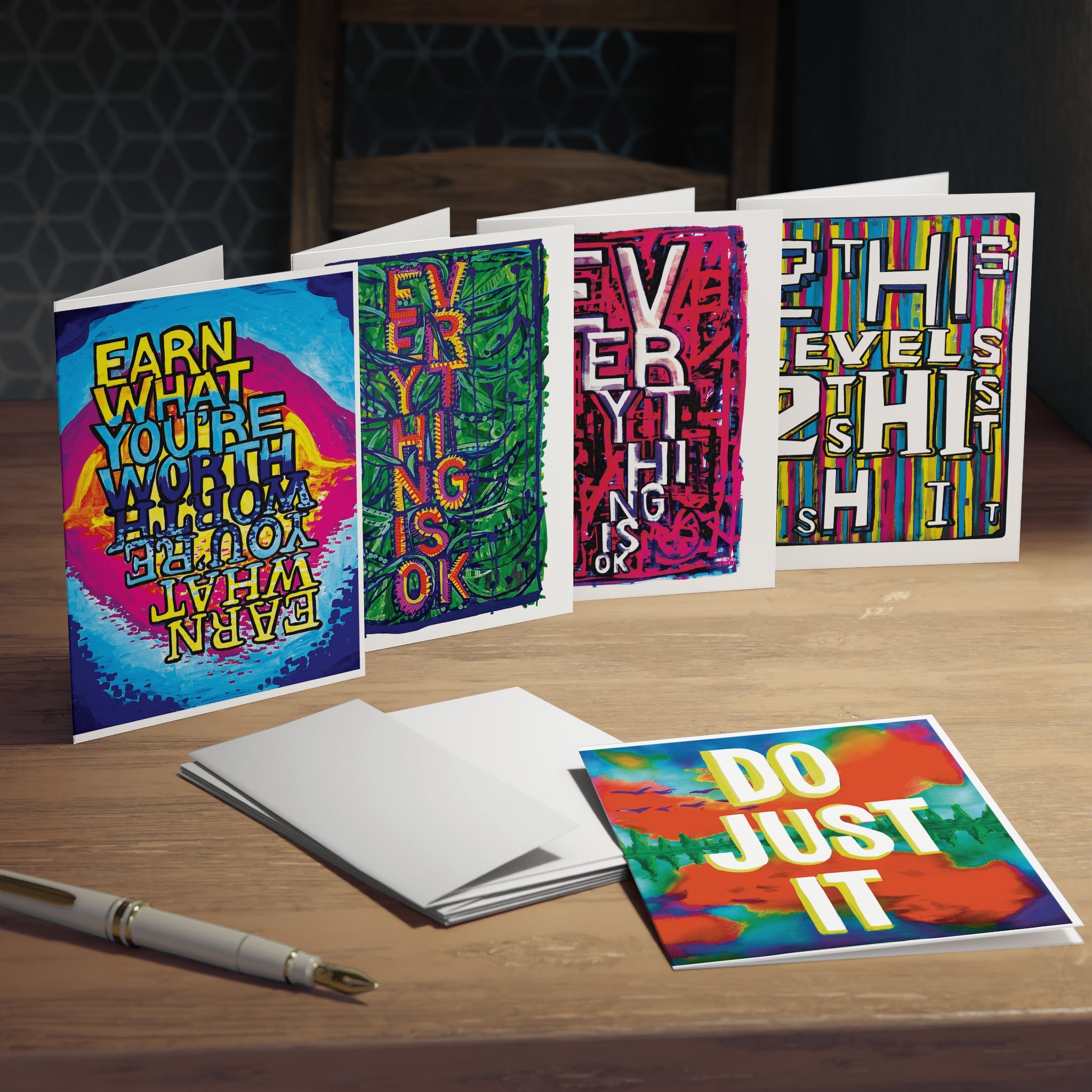Say what you mean with these vibrant multimedia street art greeting cards. Each card design has a distinct spirit brought to life by artist Elliot Loooney. With a fusion of Afro-futurism and intricate patterns, you can mix and match these cards or collect them all. You can express yourself with a canvas featuring your artistic message.